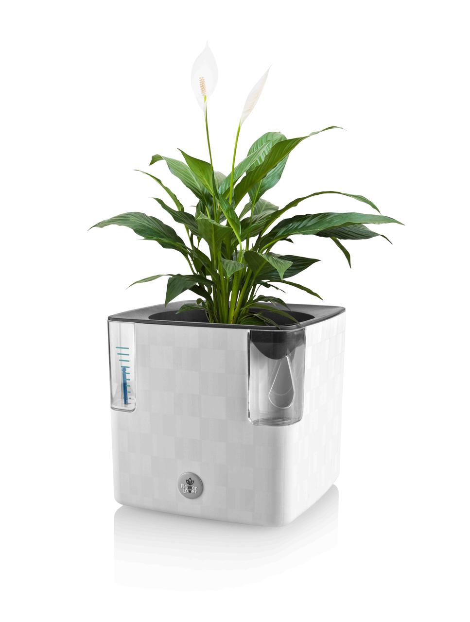 Вазон із системою автополивання Cobble 14х14 білий купити не становитиме проблем у нашому інтернет-магазині. У комплекті кашпо з автополіпом Ви знайдете: зовнішнє оригінальне кашпо з текстурою шахової дошки, внутрішній горщик призначений для розміщення в ньому технічного горщика з рослиною, і фітиль для розподілу вологи з резервуара всередині кома рослини. У кашпо Фловер Ловер Кобл затишно розміщуються рослини, які купують у техгорцях Ø 10-12 см. Пересаджувати не потрібно! Щоб вирощувати рослини у Flower Lover Cobble 14 білий досить вставити фітиль у нижню частину горщика з рослиною, розмістити його в кашпо та налити води в резервуар.